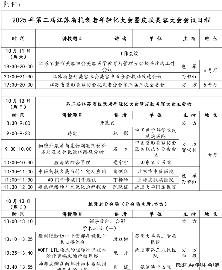 10.11-12|南京|2025年第二届江苏省抗衰老年轻化大会暨皮肤美容大会