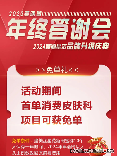 2023-12-28 19:45:29一年一度、激动人心的年终盛典终于来了,充值不仅有超值优惠,到院面诊更有大礼包相赠!消费还可能获得面单哦,多重福利齐享,更多惊喜等你来,这个年终大促不容错过!